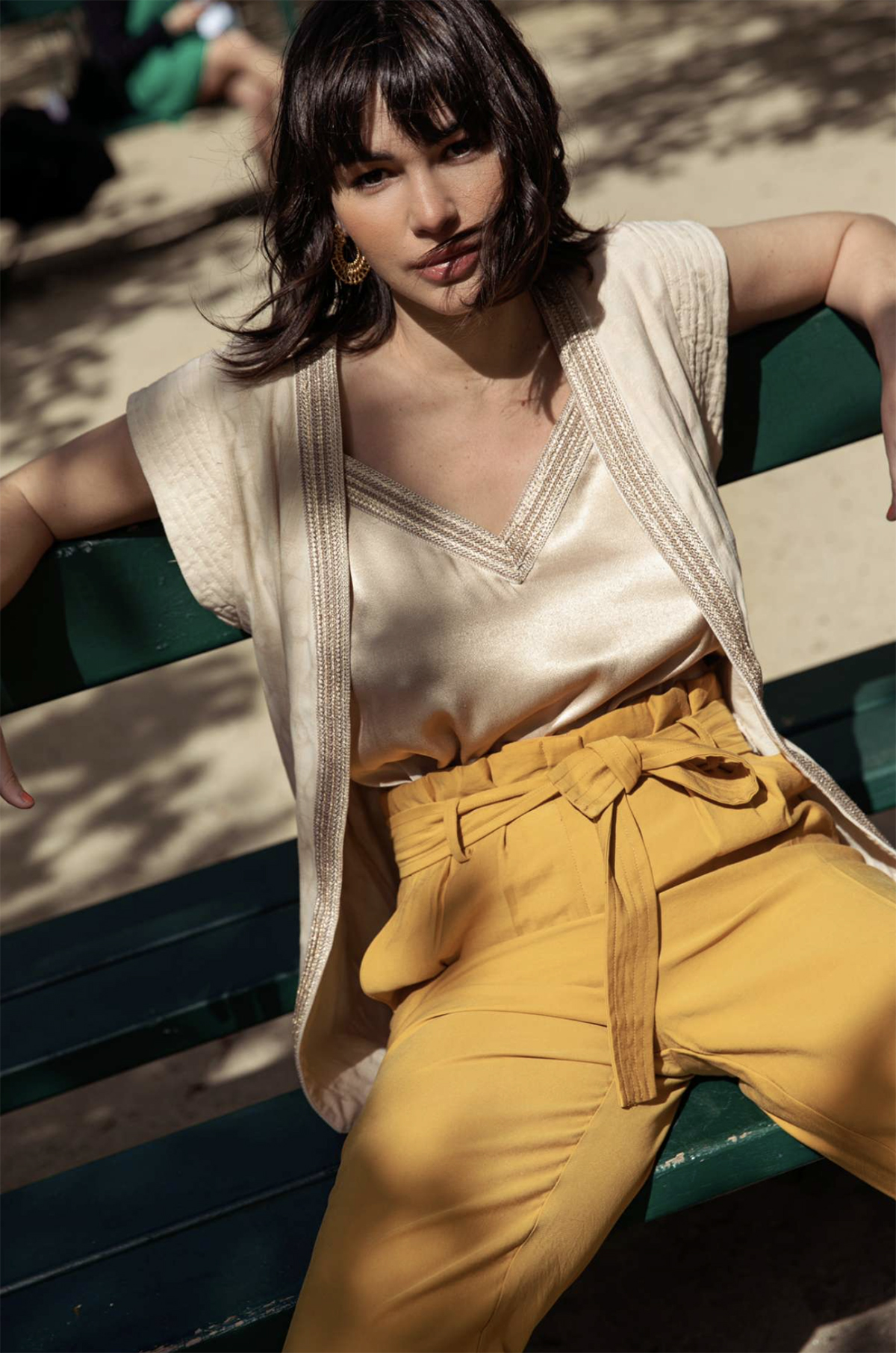 Le pantalon Taralla est un incontournable de cet été. Le pantalon est confectionné en rayonne légère et possède une bande assortie à nouer à la taille. Portez ce pantalon slim avec des chaussons et un top d’été pour compléter votre look.
