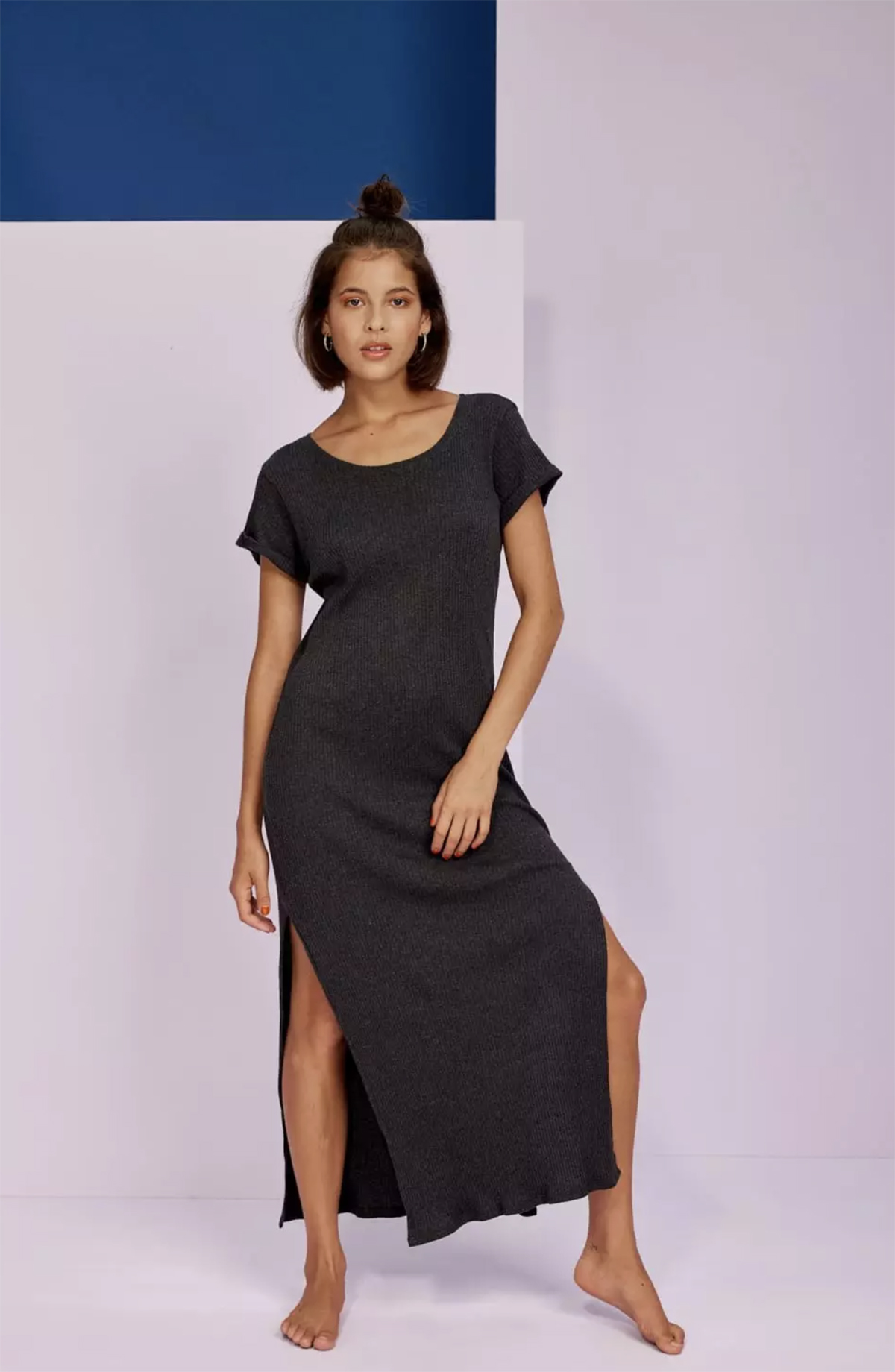 Notre robe Nina s’est fait une beauté pour l’hiver! Une maille côtelé en coton grise pour toujours plus de confort.