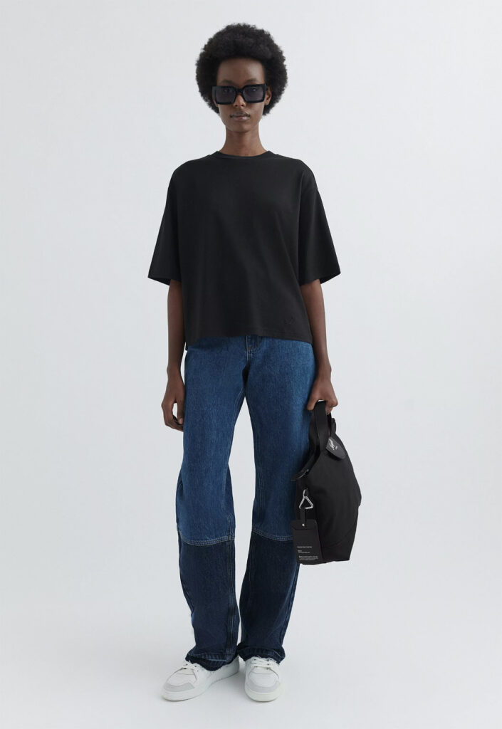 Le modèle Archive Jeans est constitué d’empiècements en denim de coton partiellement recyclé qui deviennent plus foncés en dessous du genou. Il possède une coupe droite et un empiècement arrière en cuir orné d’une signature de la marque.