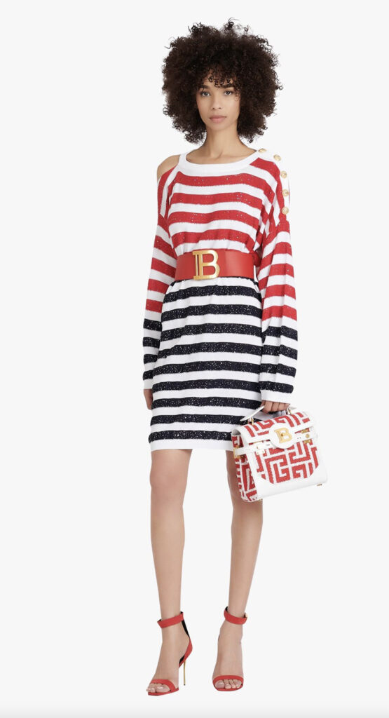 Manches longues découpées avec bretelles au niveau des épaules, boutonnages embossés dorés sur le devant