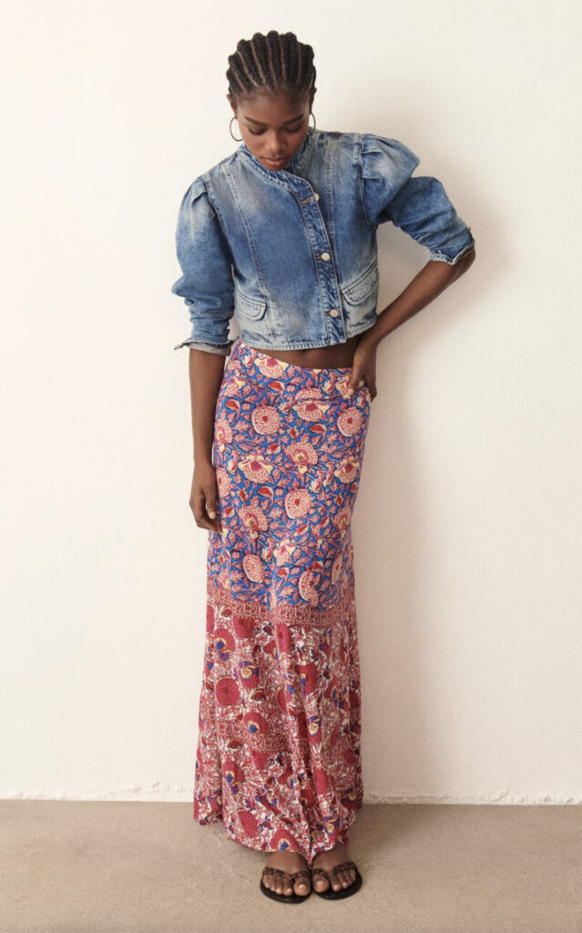 La jupe VANESSA ba&sh se veut un bouquet de fleurs dans le vestiaire féminin. Cette jupe longue séduit par son allure bohème. Elle est confectionnée dans une matière fluide rehaussée d’un imprimé mixant couleurs et motifs. On note la frise placée qui structure le jupon et la bande smockée au dos pour plus de confort. Une jupe longue fleurie résolument joyeuse.