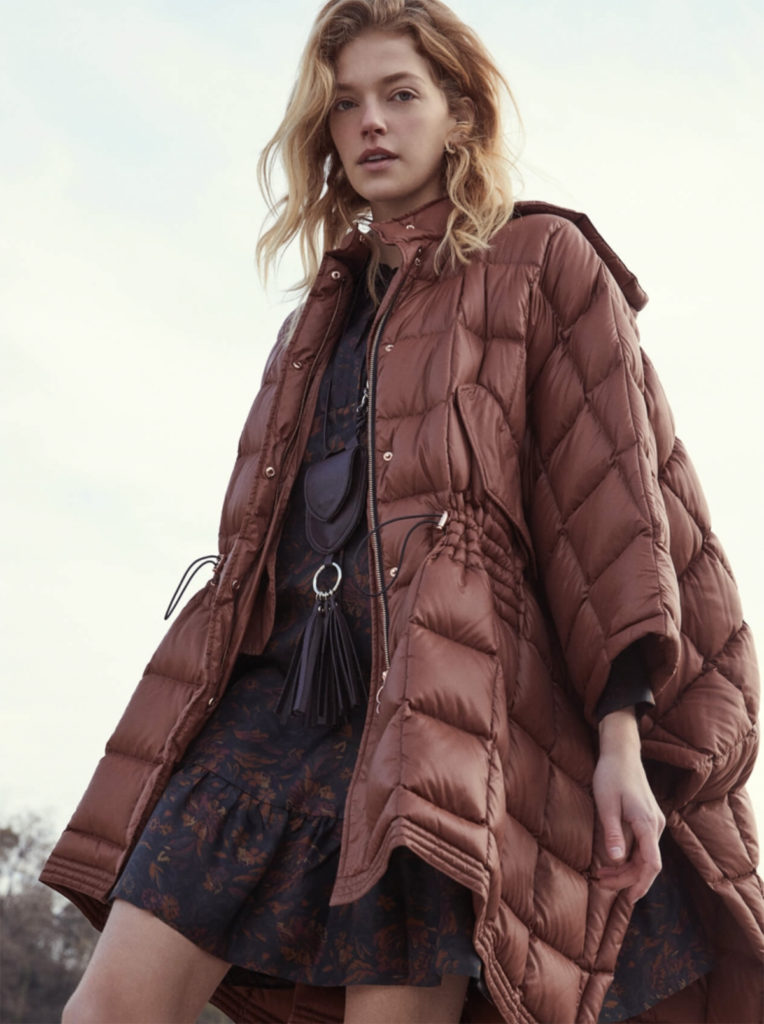 La protection et la praticité de la doudoune rencontrent le style dans cette cape en nylon matelassé. Le vêtement est doté d’une capuche amovible, d’un cordon de serrage externe avec motif de surpiqûres, d’une fermeture à l’avant avec des boutons-pression invisibles, de poches à rabat et de boutons caoutchoutés assortis sur la fermeture de la capuche.