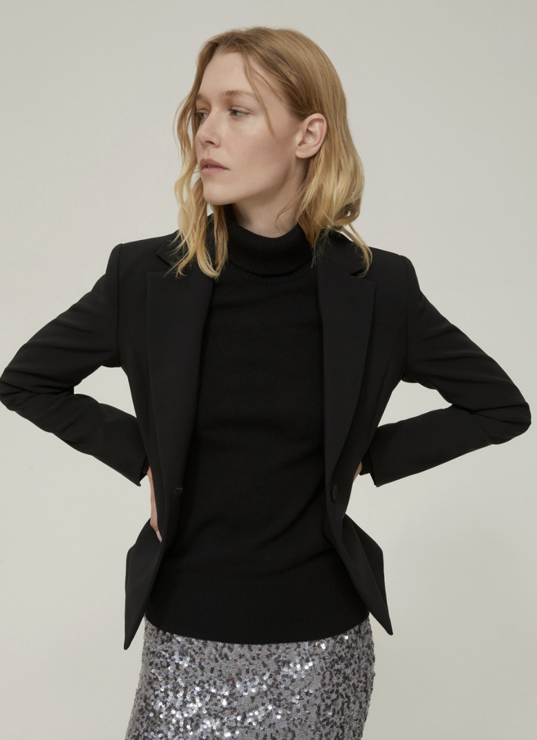 Ce modèle de blazer a été pensé pour celles qui aiment mélanger les genres. Sa doublure délicate et ses reflets subtils s’associent parfaitement à une robe fourreau ou une jupe en satin. Le résultat ? Une allure à la fois chic et décontractée, parfaite pour faire sensation lors d’un dîner ou d’une soirée entre amis.