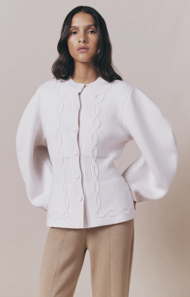 Chic en Écru: La Veste Maille Brodée qui Captive