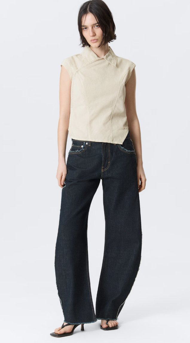 Ces créations asymétriques exploitent des lignes non conventionnelles, ajoutant du mouvement et de la fluidité à chaque pièce. Les manches décalées, les ourlets irréguliers et les cols innovants apportent une dimension supplémentaire, transformant chaque haut en une œuvre d’art portable. Ce jeu sur les proportions et les formes redéfinit ce que signifie être chic aujourd’hui.