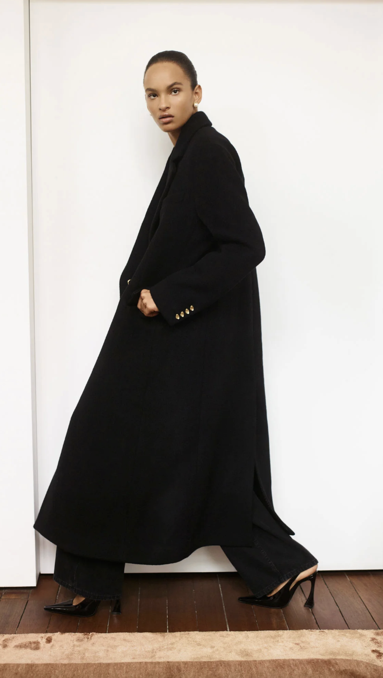 La laine utilisée pour le "Manteau Devote" n’est pas seulement douce au toucher, elle est aussi incroyablement chaude, vous permettant de braver les températures les plus fraîches avec aisance. La texture de la laine oversize offre une sensation de cocon, enveloppant le corps dans une étreinte chaleureuse et réconfortante.