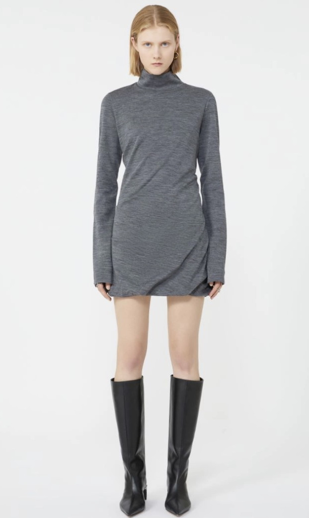 La robe col montant est un symbole d’élégance intemporelle. En intégrant ce détail sophistiqué dans une robe en jersey gris, les créateurs ont réussi à réinventer un classique. Le col montant ajoute une note de chic à cette tenue, évoquant une certaine réserve élégante tout en dégageant une aura envoûtante. Cette alliance subtile entre tradition et modernité fait de cette robe un choix parfait pour celles qui souhaitent se démarquer avec style.