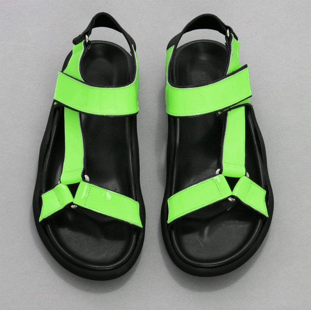Christopher Kane – Sandale OOPS! il y a 4 ans Christopher Kane – Sandale Sandale en cuir néon Christopher Kane SS21. Cuir de veau verniBout ouvertSemelle intérieure mouléeSemelle plate en caoutchoucDétails en métal argentéFermeture par sangle tactile