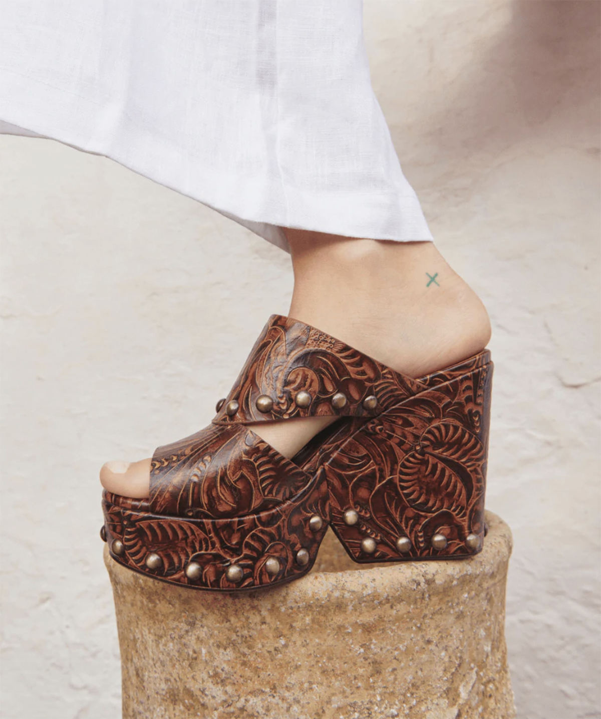 Séduisante, flamboyante, DAEL est une mule – sabot au fort tempérament hispanique qui vous accompagnera tous les jours. La hauteur de talon est de 110 mm. La cambrure est de 65 mm.