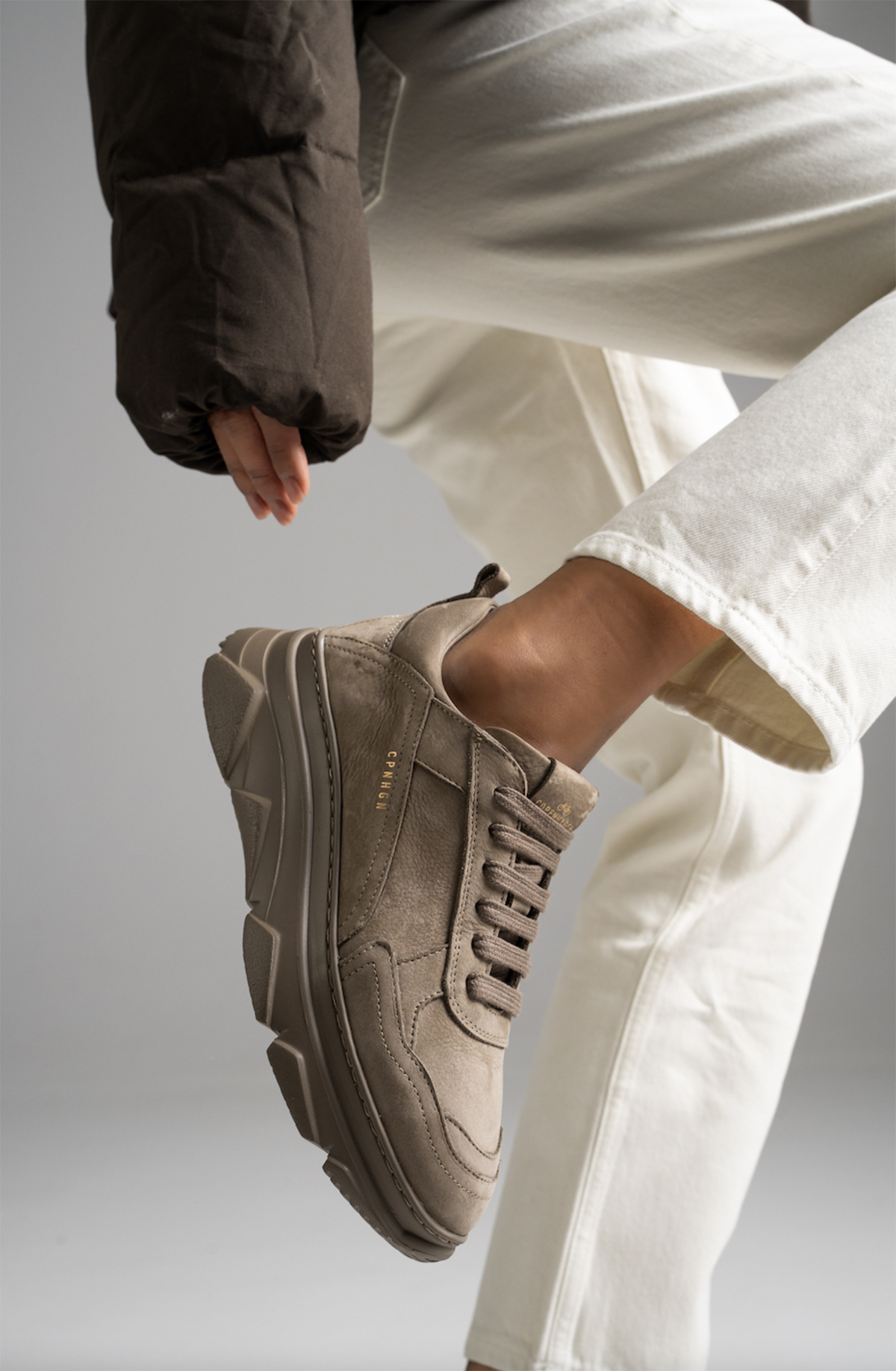 Baskets à plateforme en cuir nubuck résistant avec une surface veloutée et des pinces contrastées. Etiquette badge de la même couleur sur la languette. Boucle de traction au talon. Élégant et confortable, pour des looks quotidiens décontractés.