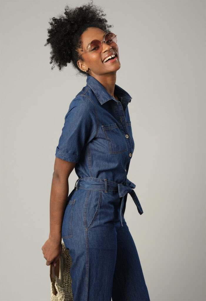 On craque complètement pour la combinaison en coton BROOK ! Cette combinaison denim pour femme est parfaite pour un look de journée à la fois vintage et moderne. Son lien à nouer à la taille sublimera toutes les silhouettes.