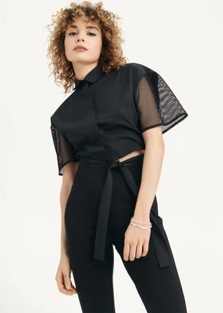 Inspiré des silhouettes féminines classiques, ce haut à manches courtes est le pont parfait entre le jour et la nuit. Son lien avant ludique à l’ourlet passe facilement du service au repos. La fermeture à boutons sur le devant se termine par un col classique.