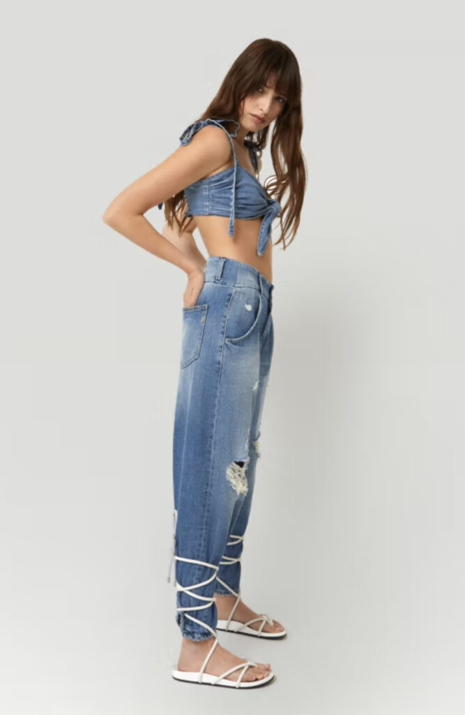 Dondup – Jean OOPS! il y a 3 ans Dondup – Jean Jean cinq poches coupe ample Flor, taille normale, ceinture ajustée, pinces devant. 100% coton biologique.