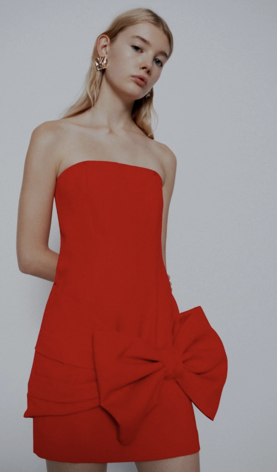 Éclat Festif: Robe Bustier Rouge et Nœud Maxi