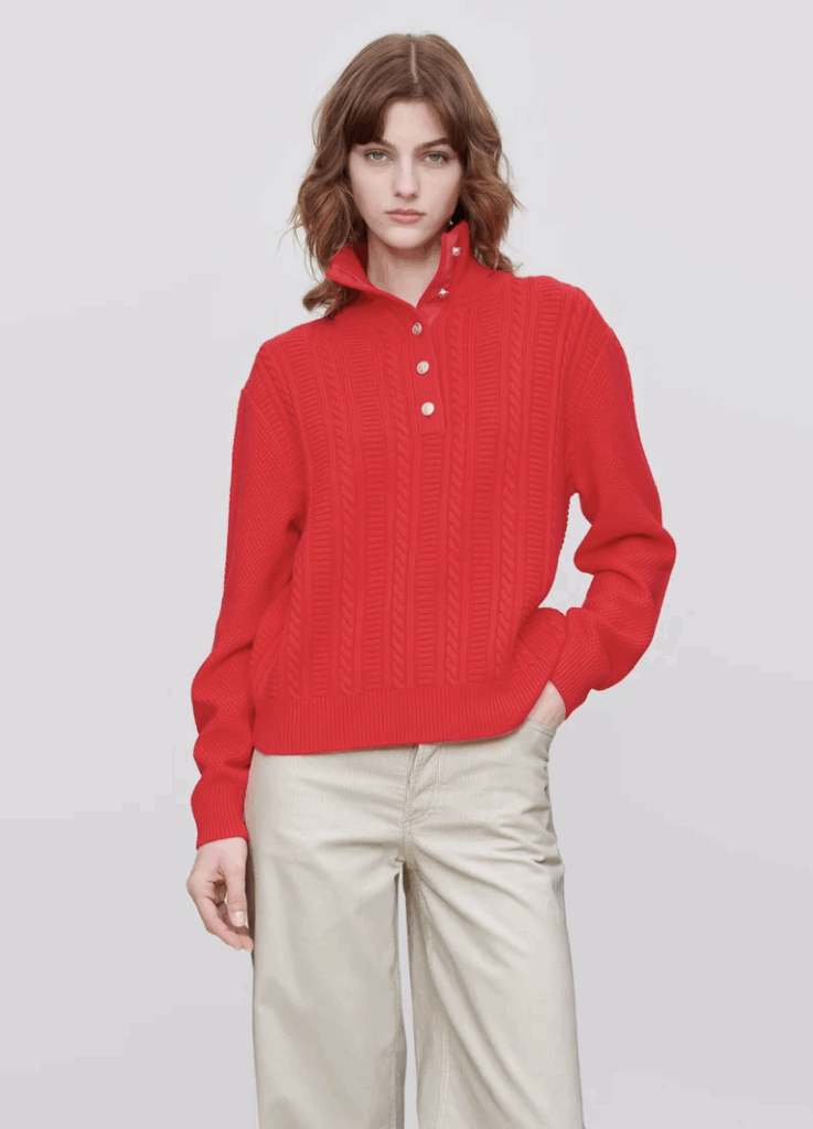 Élégance Ancrée : Le Pull Rouge en Laine RWS