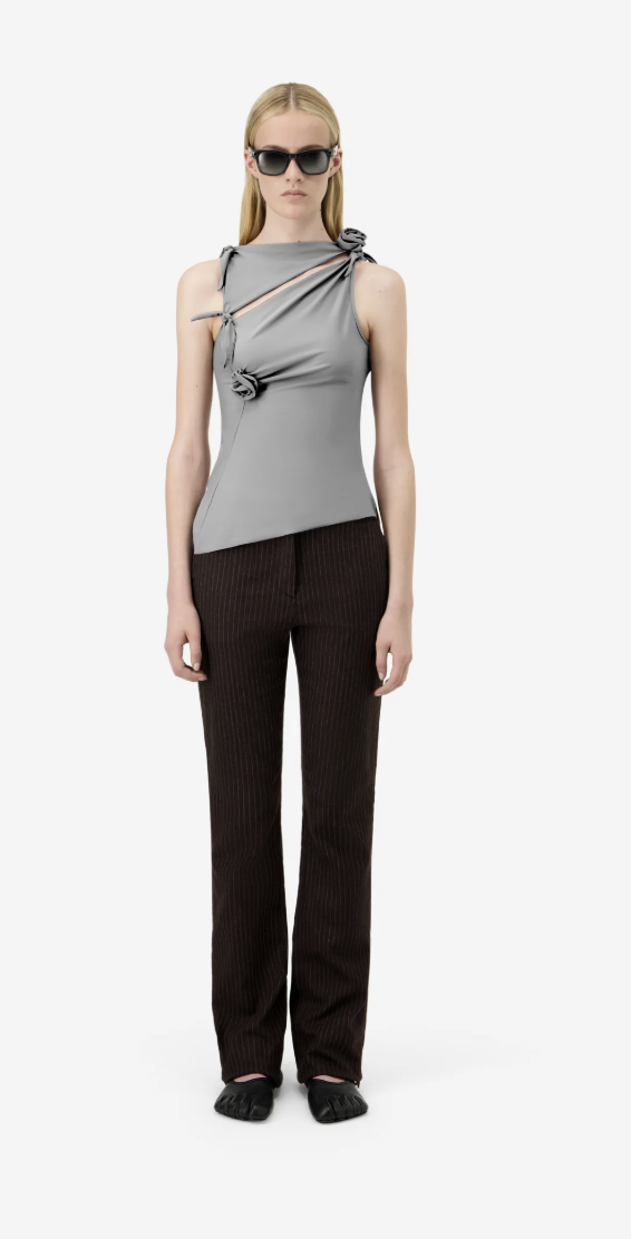 Le nœud, élément central de ce top, est bien plus qu’une simple décoration. Il symbolise l’art de la sophistication, ajoutant une dimension supplémentaire à l’ensemble. Ce détail astucieux permet de personnaliser l’ajustement, offrant ainsi à chaque femme la possibilité de créer un look qui lui est propre. Le nœud devient le point focal, attirant subtilement l’œil et accentuant la silhouette.