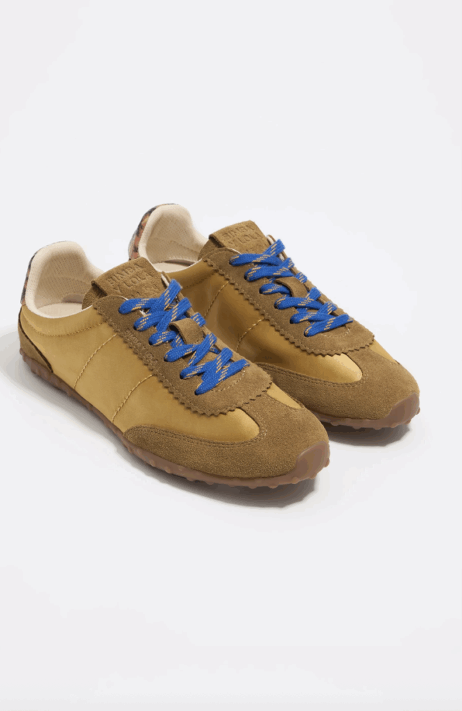 L’ocre, une couleur souvent associée à la terre et à la chaleur, trouve dans ces baskets un nouveau souffle. En combinant cette teinte naturelle avec un design moderne et festonné, elles évoquent à la fois la tradition et l’innovation. L’ocre se transforme ici en symbole de sophistication, et chaque nuance bronze est soigneusement choisie pour rehausser l’ensemble.