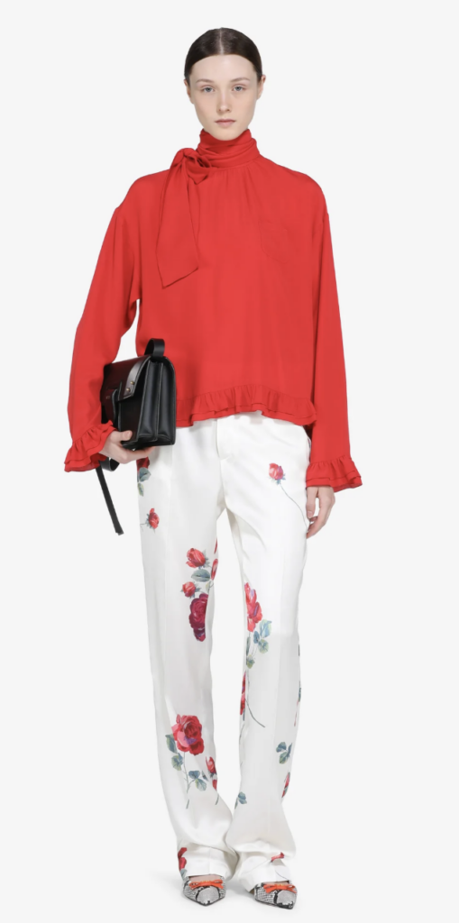 L’élégance du rouge réside également dans sa capacité à s’harmoniser avec une variété de styles et de couleurs. Il se marie parfaitement avec des tons neutres comme le noir ou le blanc, tout en offrant un contraste audacieux avec des couleurs plus vives. Ce chemisier à nœud papillon devient ainsi une toile sur laquelle chaque femme peut peindre son propre chef-d’œuvre de mode, alliant tradition et modernité avec panache.