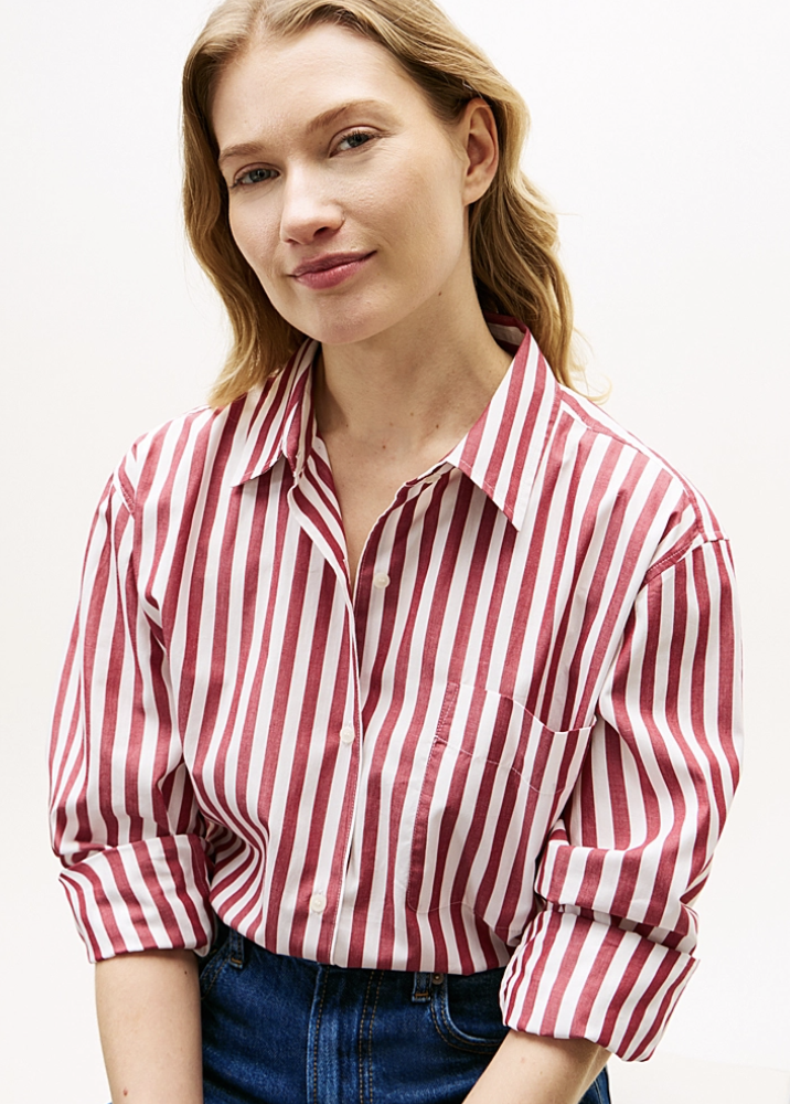 L’élégance ne réside pas seulement dans la coupe ou le tissu, mais aussi dans la façon dont on porte un vêtement. La chemise popeline oversize rayée incarne cet art de l’élégance avec une aisance décontractée. Elle permet à chacun de jouer avec les volumes, d’exprimer sa personnalité tout en restant dans les codes du raffinement.