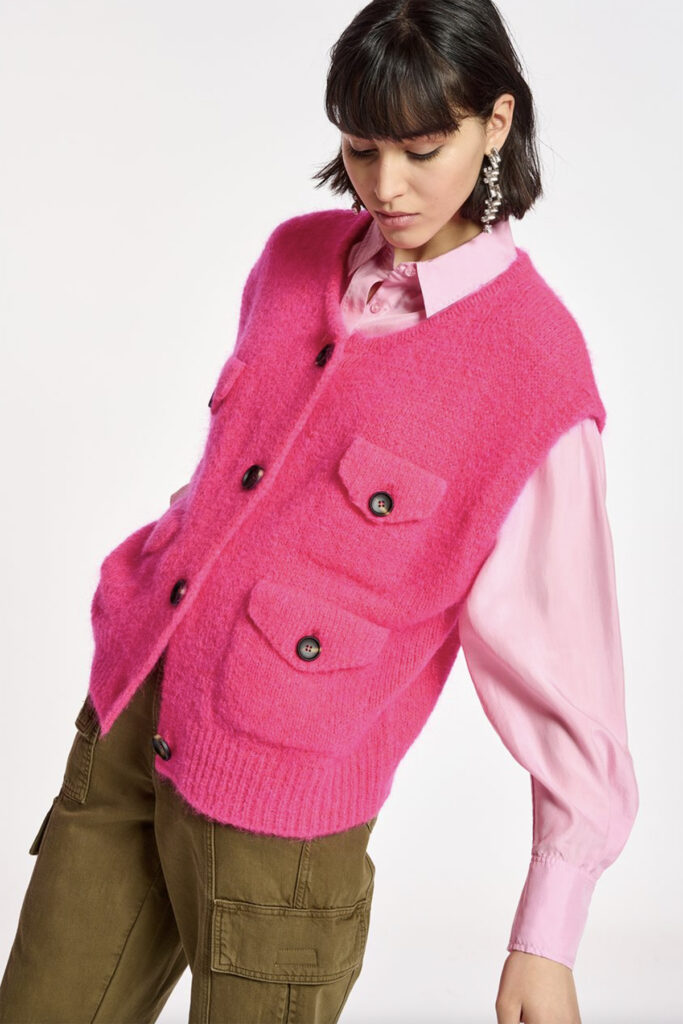 Tricoté en Italie à partir d’un fil de mohair mélangé ultra doux et pelucheux, ce cardigan sans manches s’avèrera être une pièce de superposition incontournable au fil des saisons. Les poches à rabat boutonnées lui donnent un air preppy, tandis que sa coupe décontractée se porte aussi bien seule que par-dessus une chemise.