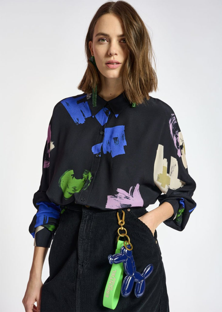Chemise oversize fluide, réalisée dans une matière subtilement texturée. Le col et les manchettes classiques équilibrent la coupe volumineuse avec une touche élégante et raffinée.