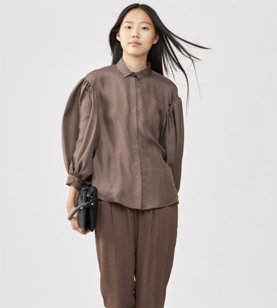 Chemise élégante en gaze de soie fraîche, elle se démarque grâce à la manche ballon. Avec une coupe oversize, pour des looks de tous les jours.