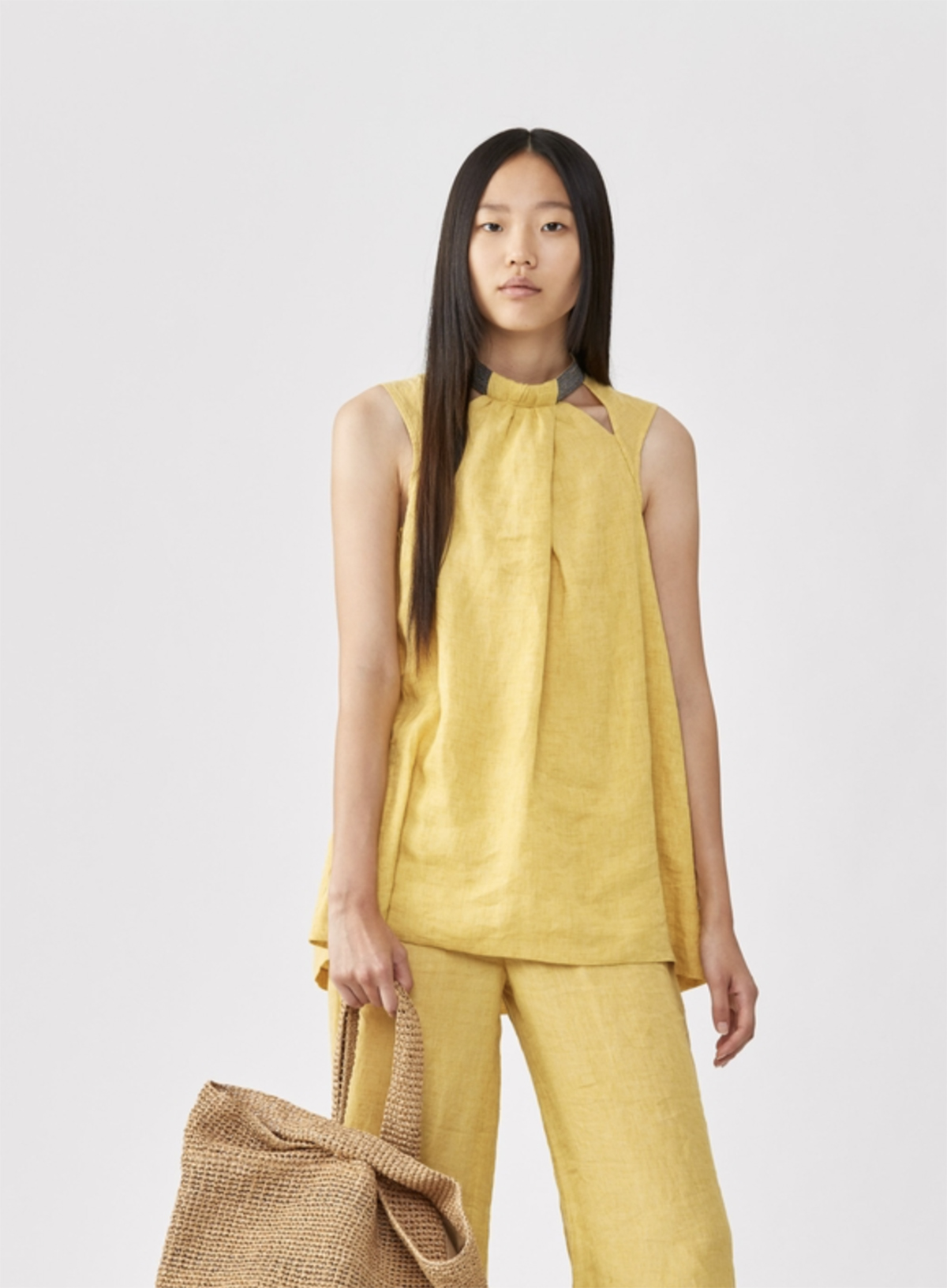 Top sans manches essentiel en toile de lin. De coupe regular, il se démarque grâce à son empiècement avant. Facile à assortir.