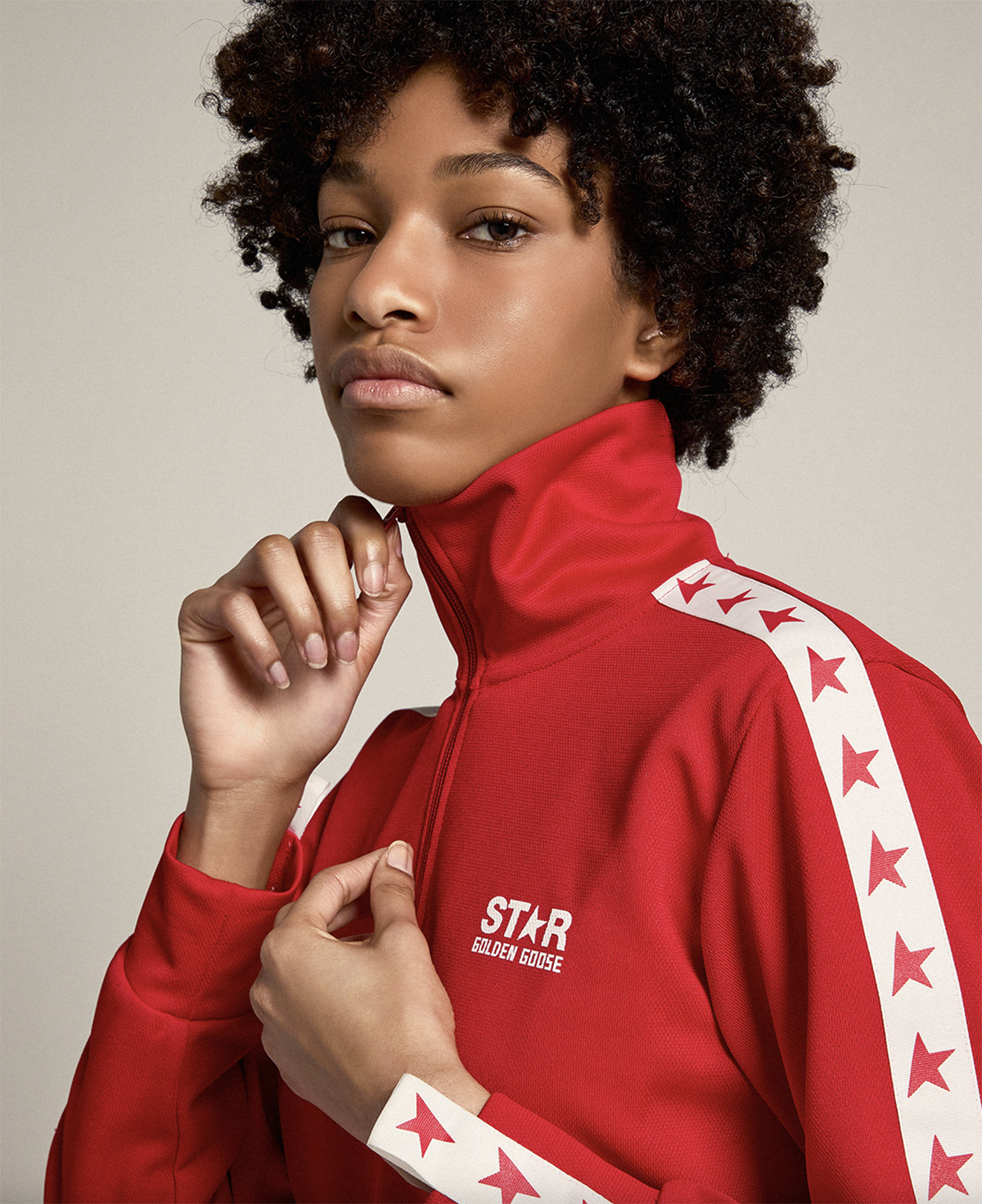 Sweat-shirt avec fermeture à glissière Denise collection Star de couleur rouge avec étoiles rouges
