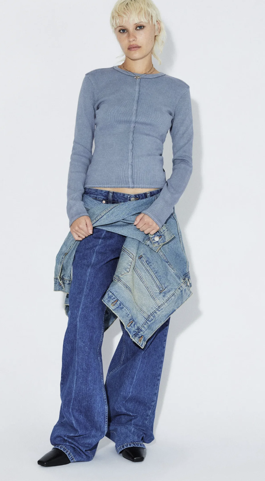 Le Jean Stella Rib se distingue par son bleu délavé, une teinte subtile qui évoque les nuances apaisantes du ciel d’été. Ce bleu n’est pas simplement une couleur; c’est une expérience visuelle qui vous transporte instantanément. Chaque pantalon est unique, offrant des variations subtiles qui captivent et enchantent. Que vous le portiez pour une promenade en ville ou une soirée décontractée, le Jean Stella Rib attire tous les regards.