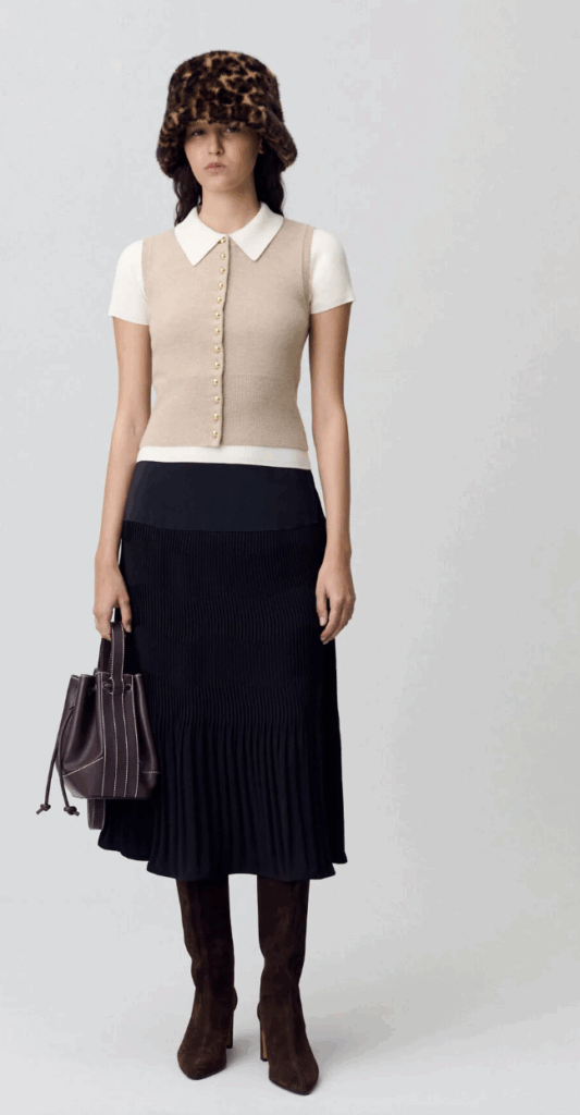 Cette fusion de styles se reflète également dans les accessoires qui accompagnent la jupe plissée. Des bottines en cuir vieilli, des chapeaux de paille élégants, et des sacs en osier complètent le look cottage-chic, créant une esthétique à la fois rétro et innovante. Ainsi, l’élégance cottage s’impose comme un pont entre le passé et le présent, où chaque jupe plissée raconte une histoire unique de raffinement et de modernité.