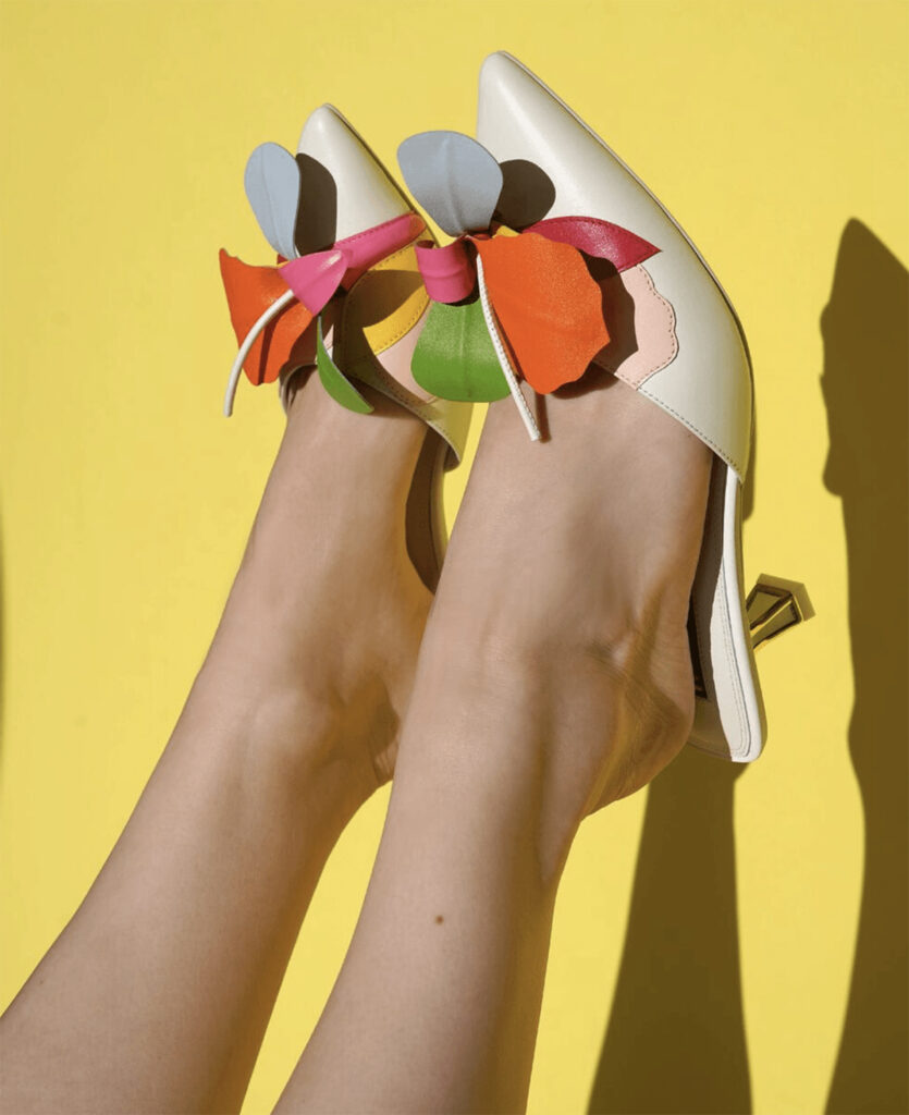 Un petit talon qui semble tout sauf petit, l’Arti est votre nouveau go-to. Confectionné en cuir multicolore et doté d’un talon aiguille bas, il présente des pétales en 3D sur le devant qui apportent une touche de détail coloré prêt pour la saison des fêtes.