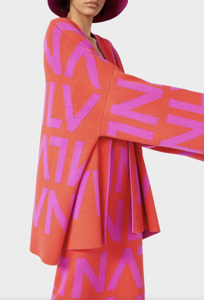 Cardigan en cachemire recyclé avec motif lettering, manches longues avec emmanchure descendue, modèle over, ouvert sur le devant, longueur sous les hanches.