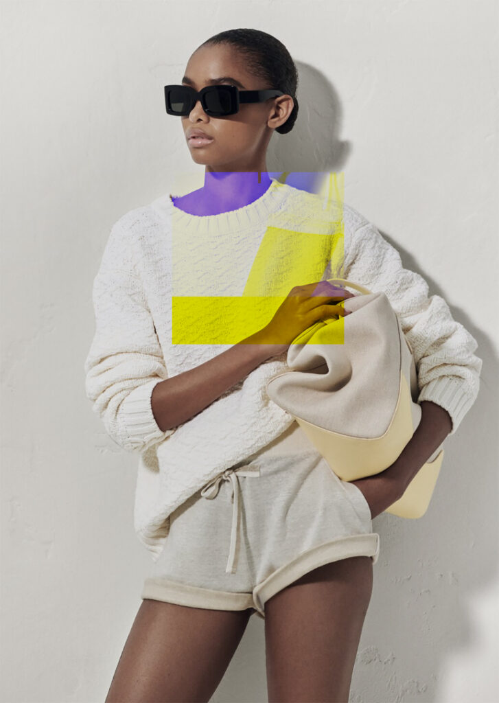 Pantalon court en jersey double de lin caractérisé par le jeu chromatique des différentes nuances contrastées entre le côté extérieur et intérieur. La taille élastiquée et la finition en aloe soulignent l’esprit sportif et garantissent un confort absolu.