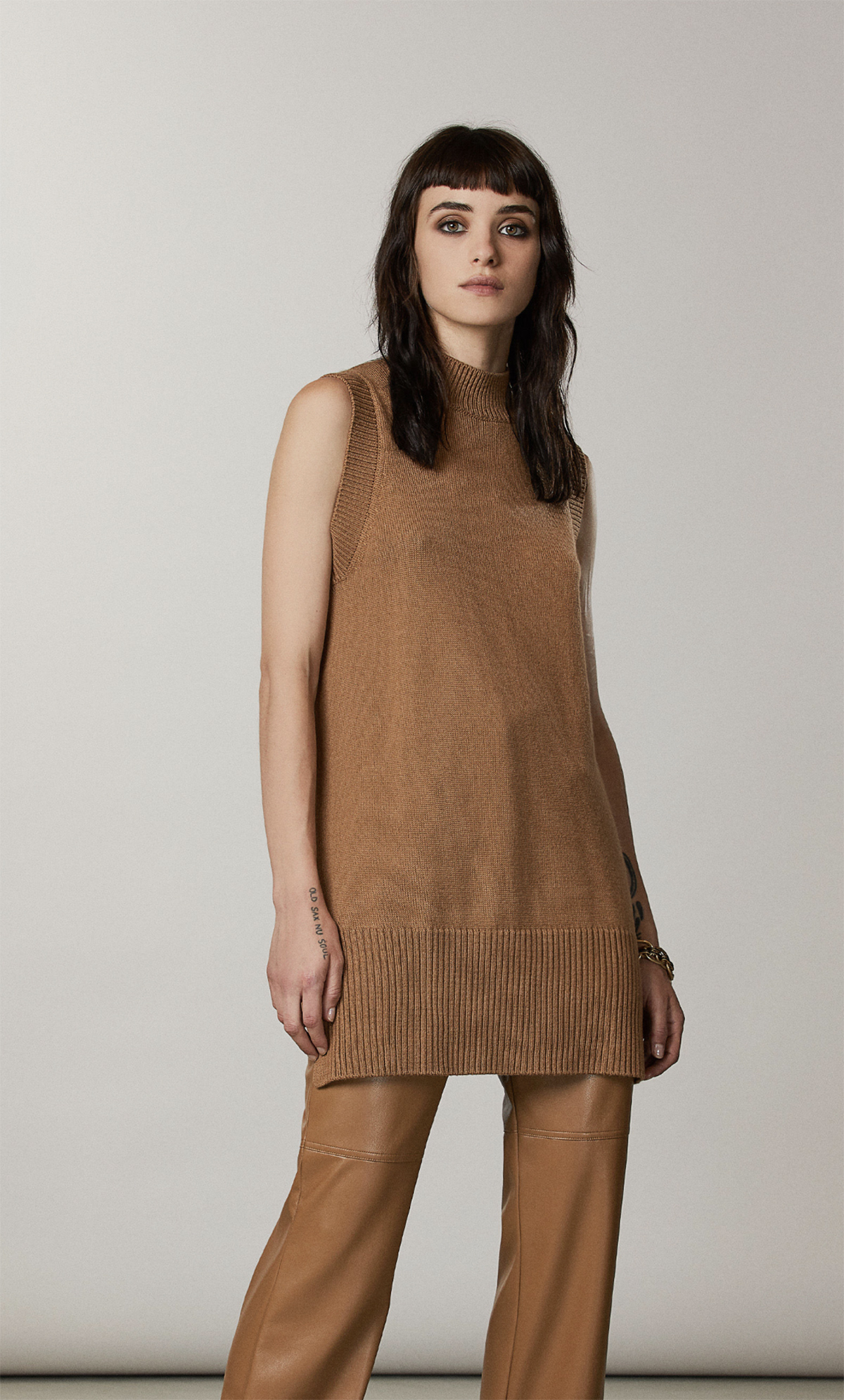 Gilet en laine mélangée à col montant et coupe fluide. Les petites fentes sur les côtés offrent plusieurs possibilités de style et une touche de mouvement supplémentaire.
