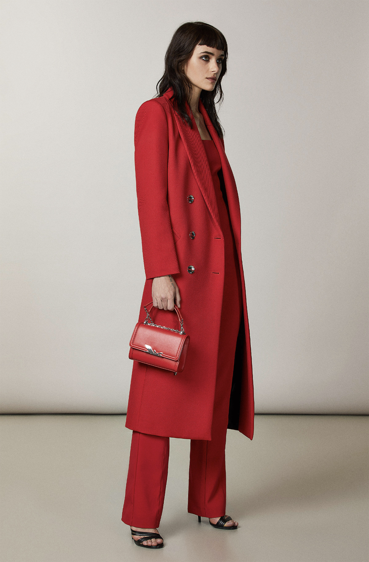 Star incontestée de la saison froide, le manteau dévoile son inspiration nautique dans cette version midi près du corps. La fermeture à double boutonnage, complétée de boutons ornés du logo, illumine l’ensemble de ses reflets métalliques.