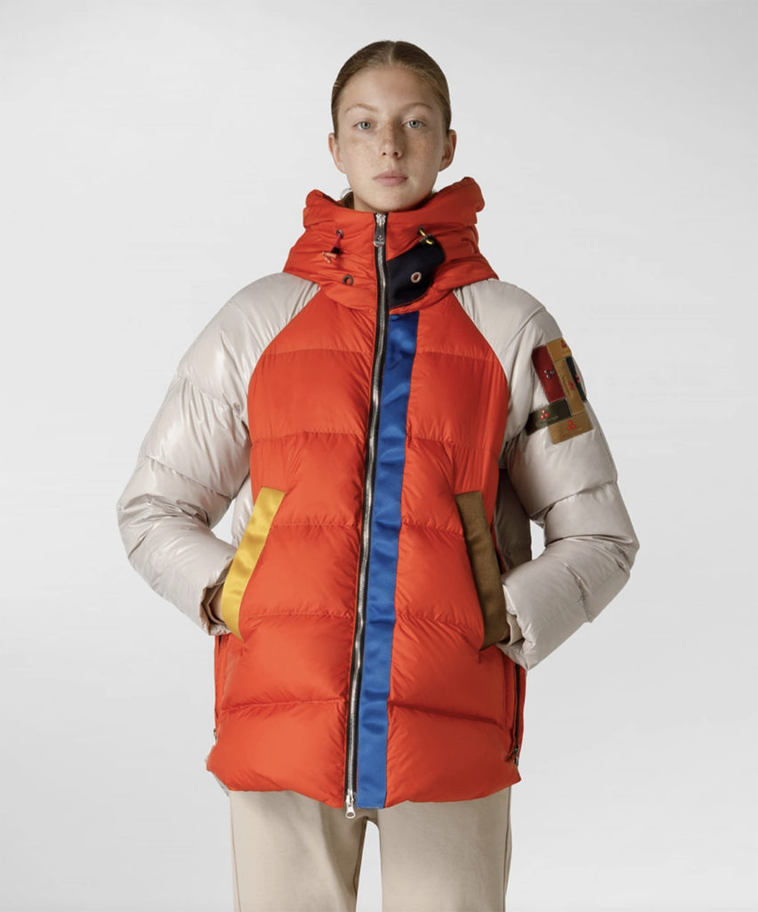 Doudoune en nylon, de longueur moyenne, entièrement réalisée avec la réutilisation de tissus d’archives et rembourrée de plumes de duvet recyclées. Zip central intégral, col à capuche et tirants. Diverses bandes porte-logo sont cousues sur la manche; les poches latérales, bordées de couleur contrastante, terminent l’article dans un ton ludique. Chaque modèle de cette collection, appelée RECYCLE, est créé avec des pièces uniques et il est numéroté. Pour rester fidèle au chemin emprunté avec BETTER FUTURE, Peuterey s’inscrit dans la philosophie du ZÉRO DÉCHET, en éliminant les stocks des entrepôts et en réduisant l’impact environnemental.