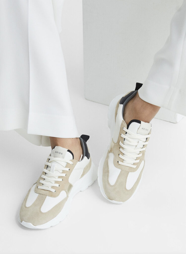 LA DURABILITÉ EST AU CŒUR DES BASKETS EVO, ALLIANT STYLE ET FONCTIONNALITÉ. ILS SONT CONÇUS DANS UNE FORME DE COURSE TRADITIONNELLE AVEC DES DÉTAILS HAUT DE GAMME EMBLÉMATIQUES DE REISS. FERMETURE À LACETS ET SEMELLE EN CAOUTCHOUC.