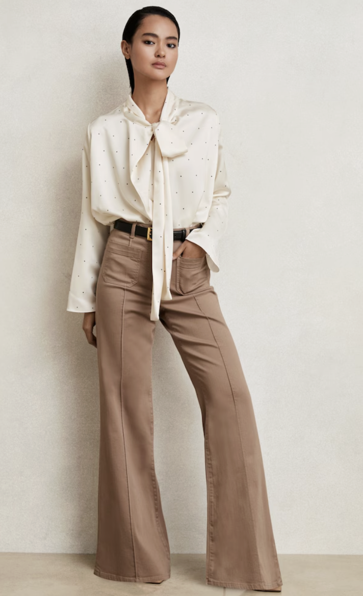 Rina intègre ces motifs avec une telle finesse que chaque vêtement devient une déclaration de style. Les blouses à pois se marient parfaitement avec les jupes satinées, créant ainsi un contraste saisissant entre la fluidité du tissu et le caractère espiègle des motifs. Chaque ensemble raconte une histoire de sophistication décontractée, où le classique rencontre le moderne.