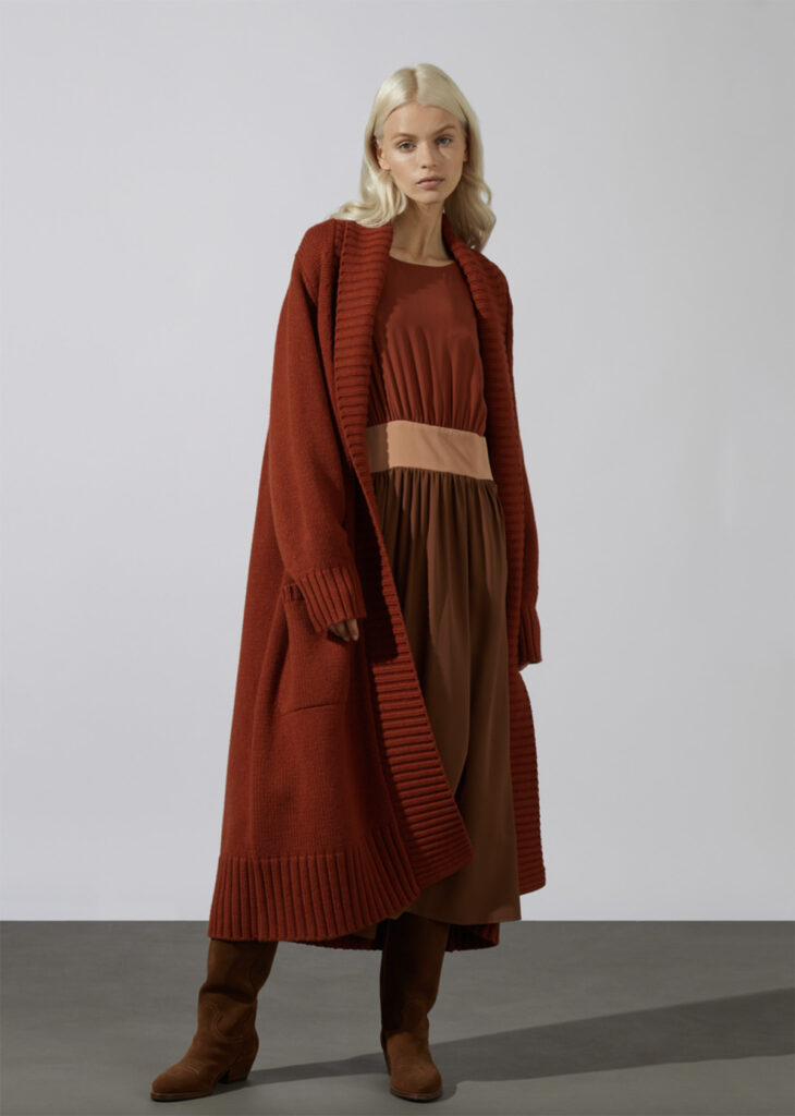 SEMICOUTURE – Robe OOPS! il y a 3 ans SEMICOUTURE – Robe robe en crêpe de chine à col rond, manches longues kimono, ceinture, modèle évasé, longueur mi-mollet.